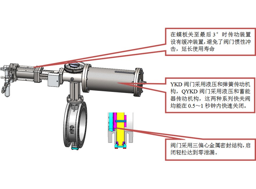 適用于電廠汽輪機(jī)系統(tǒng)上,當(dāng)機(jī)組出現(xiàn)事故時(shí)快速關(guān)閉,有效防止汽機(jī)抽汽管道蒸汽和冷凝水倒灌,瞬間切斷管路保護(hù)汽輪機(jī)安全;